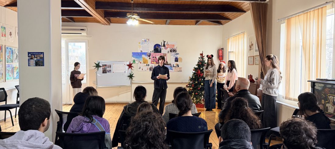 New Year Celebrations in English-Speaking Countries United Kingdom United States New Zealand Australia Canada კერძო სკოლა ნკ-ს მოსწავლეებმა პრეზენტაციის ფარგლებში განიხილეს, თუ როგორ აღინიშნება ახალი წელი ინგლისურენოვან ქვეყნებში. მოსწავლეებმა, შესანიშნავი ინგლისური საუბრით, წარმოადგინეს სხვადასხვა ქვეყნის ტრადიციები და დღესასწაულის თავისებურებები განსაკუთრებული მადლობა ინგლისური ენისა და ლიტერატურის...